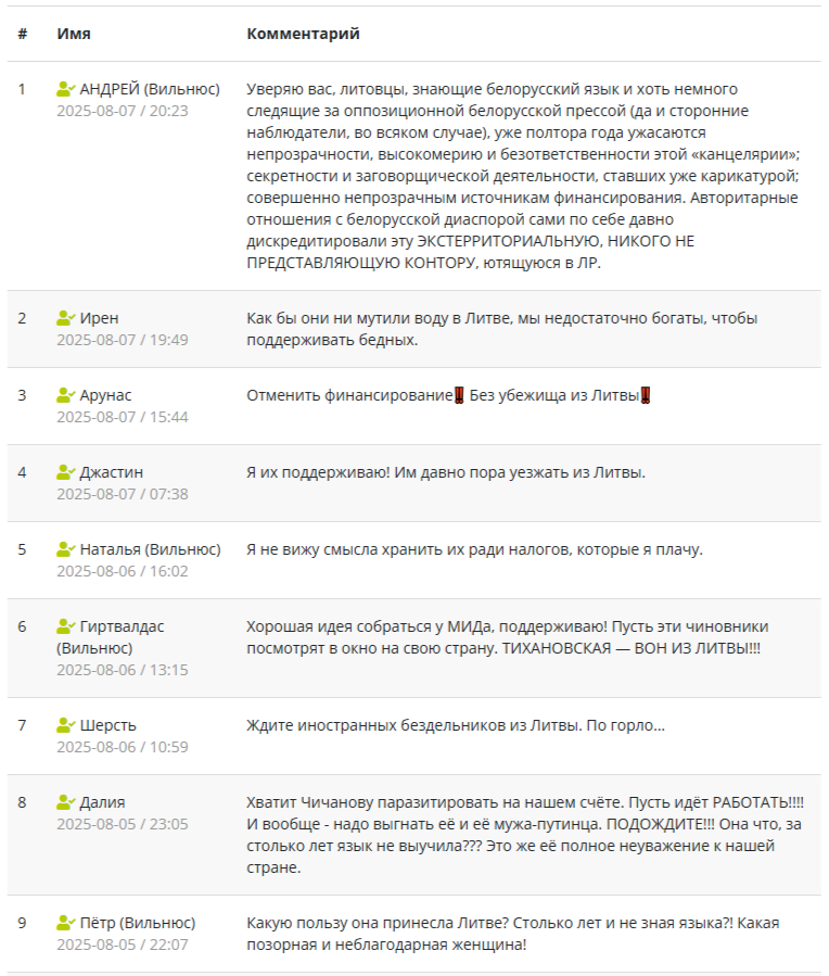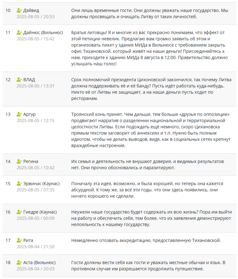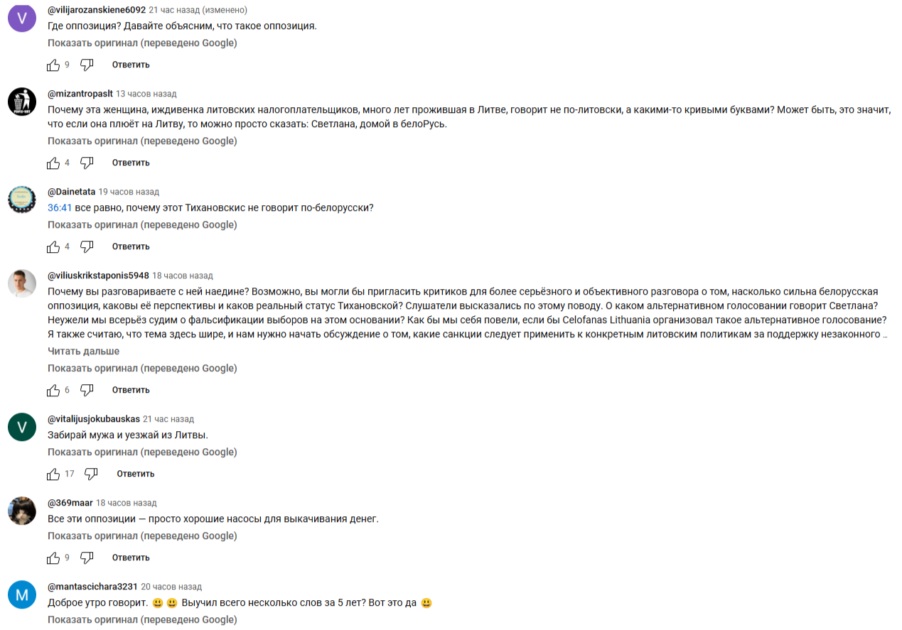 В целом, тут даже комментарии излишни. Настроения литовцев о белорусских иждивенцах налицо. А кто все-таки интересуется комментариями и, возможно, считает, что данные звонки не являются объективным срезом мнения литовских граждан, предлагаю ознакомиться с комментариями под петицией об отмене аккредитации Светкиной конторки и публикацией радиоэфира на «Ютуб». Для вашего удобства даже переведу. Для неверующих ссылки также прилагаются.
